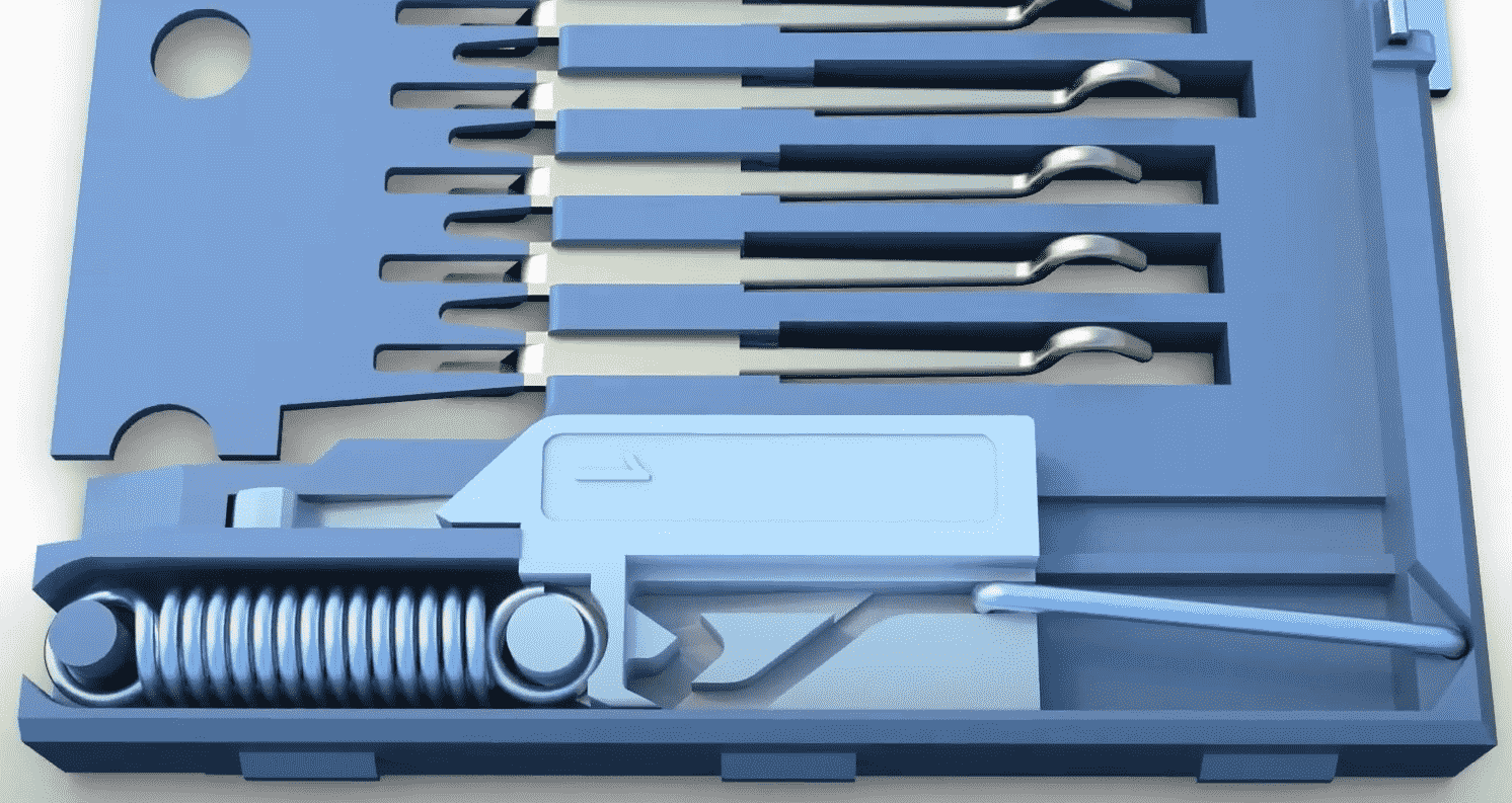 Design a lock and key mechanism that doesn’t need springs, gravity, or any other passive biasing force to function